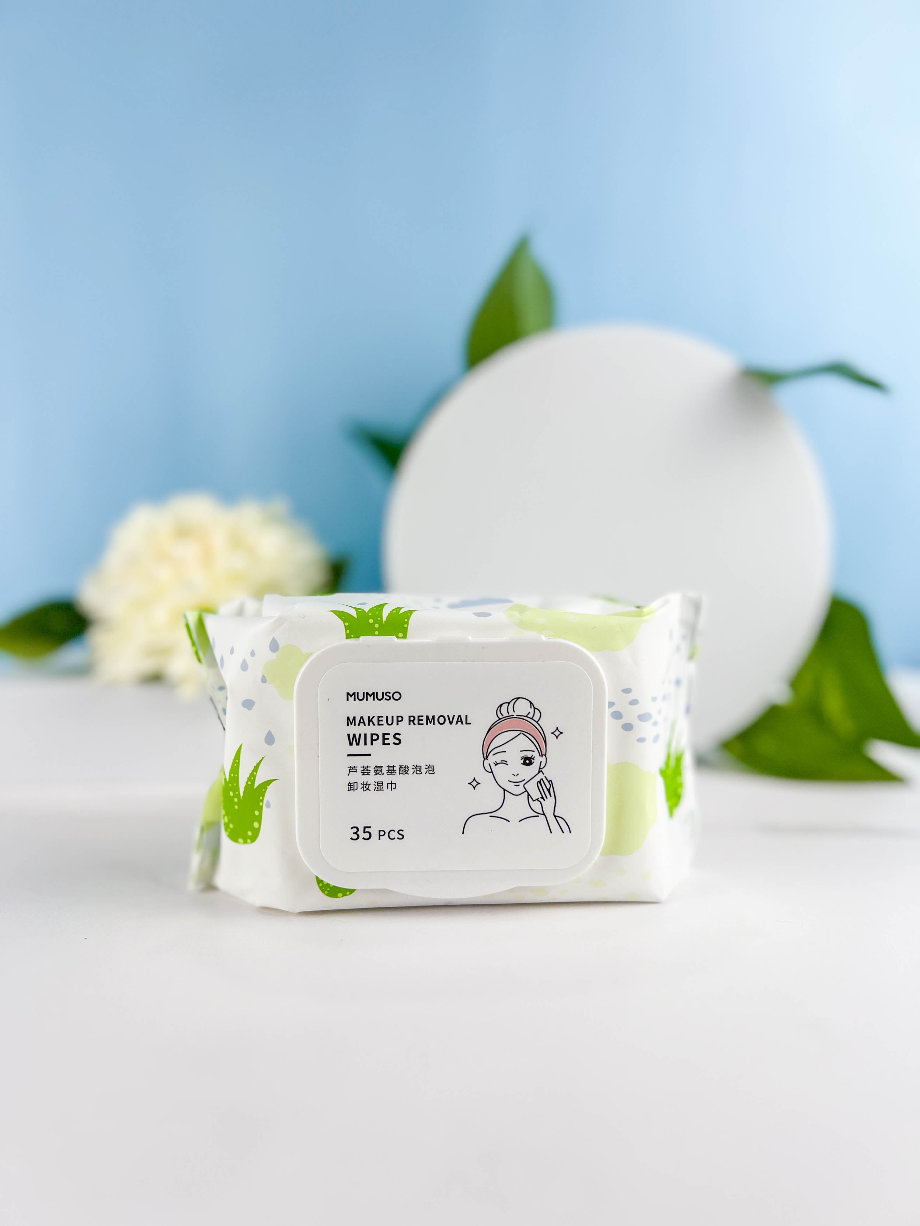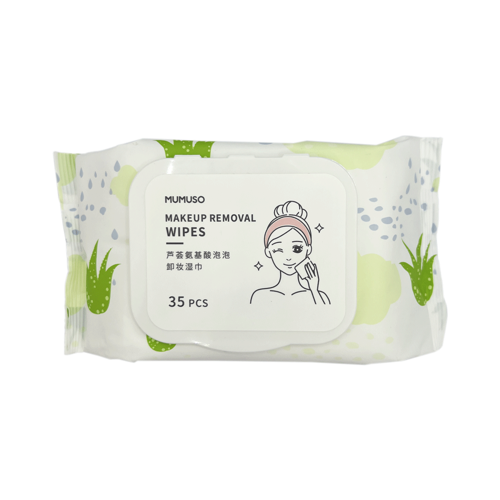 Mumuso Amino Acid Self-Foaming Makeup Removal Wipes - Aloe (35count)