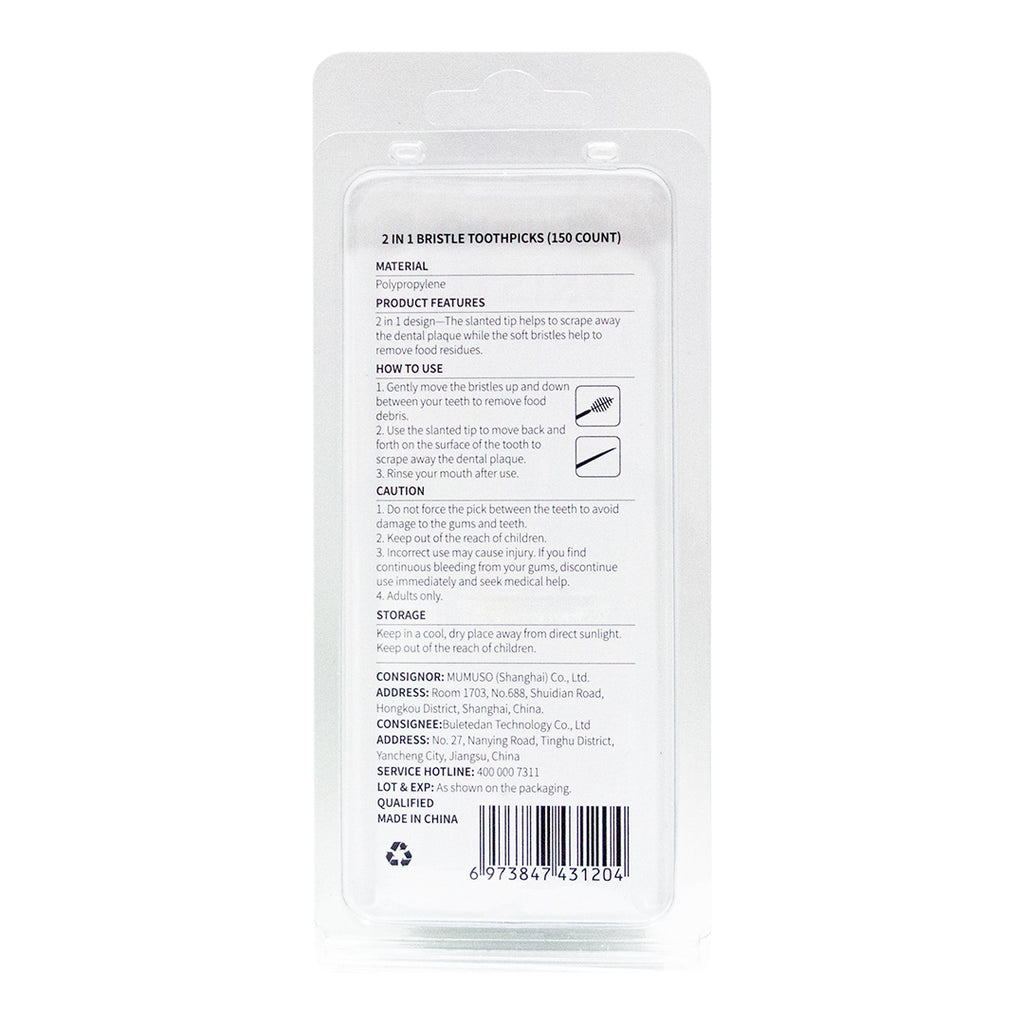 Mumuso 2 In 1 Bristle Toothpicks - 150 Count