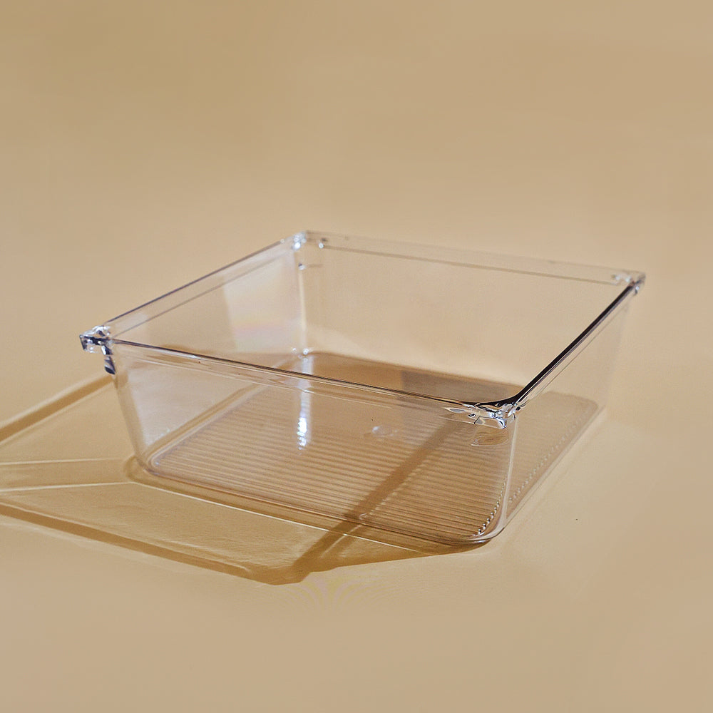 Organize and declutter your space with MUMUSO's Crystal Clear Storage Box in size M. See-through design and durable material make it perfect for storing and displaying your belongings. Say goodbye to messy spaces and hello to a clean and stylish home. Get yours now!
