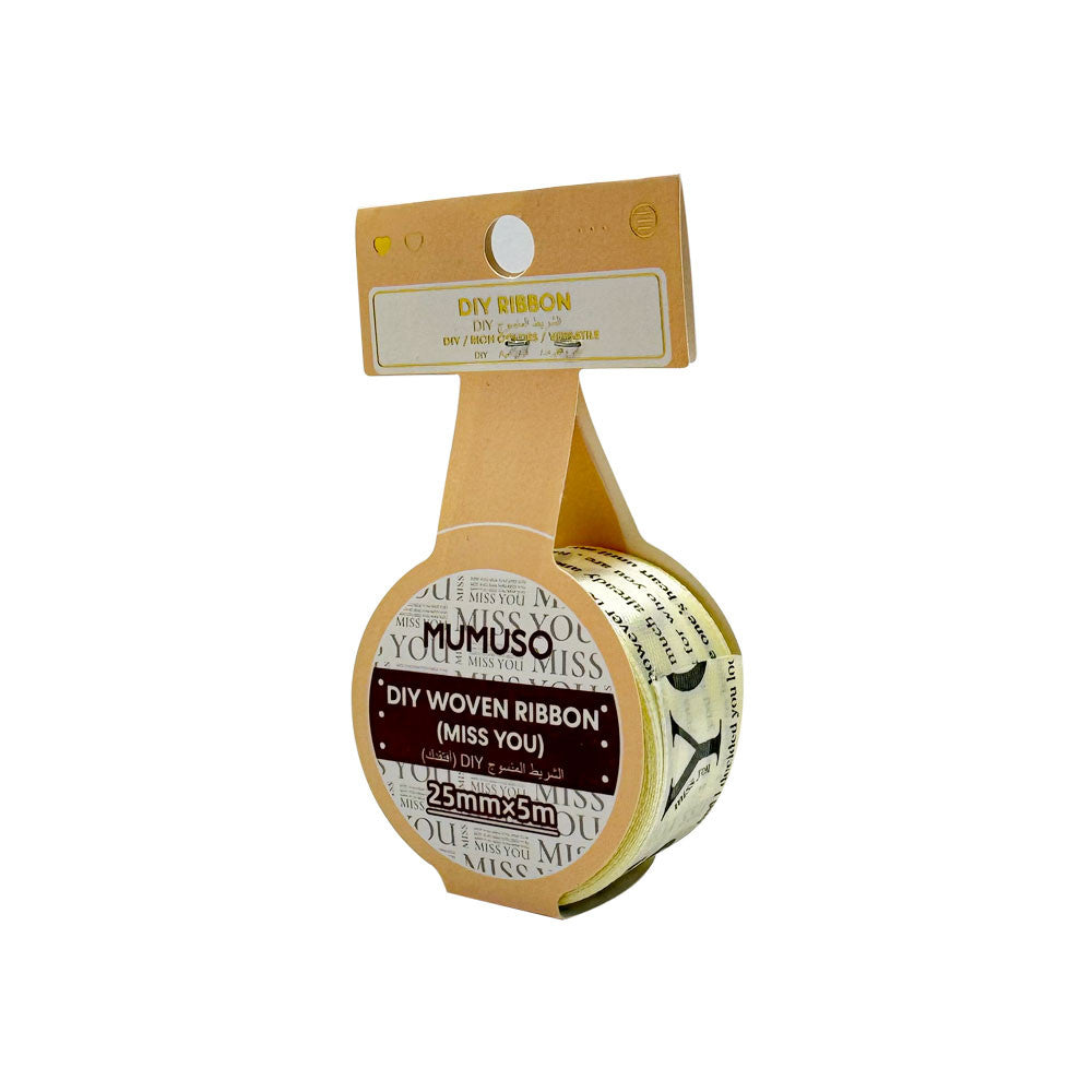Create heartfelt and personalized gifts with the Mumuso DIY Woven Ribbon, Miss You. This versatile and charming ribbon allows you to express your emotions and create a unique touch to your DIY projects. Made with high-quality materials, this ribbon adds a touch of elegance and love to any handmade gift.