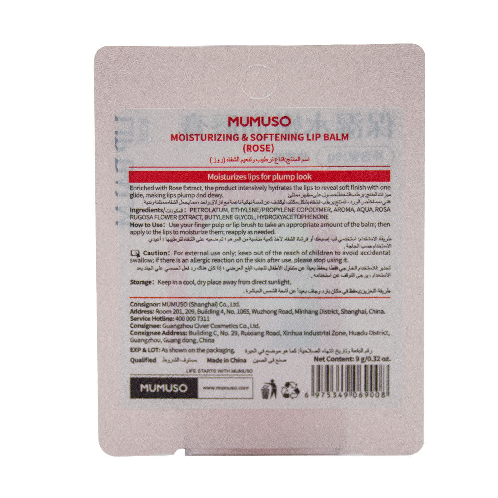 Experience the power of Mumusos Moisturizing & Softening Lip Mask, infused with nourishing rose extract. This luxurious lip mask deeply hydrates and softens lips, leaving them supple and smooth. Say goodbye to dry, chapped lips with Mumuso.