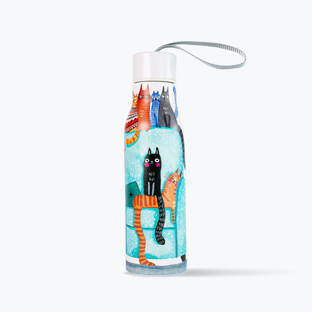 Mumuso Hand-Painted Cat Pattern Stainless Insulated Water Bottle