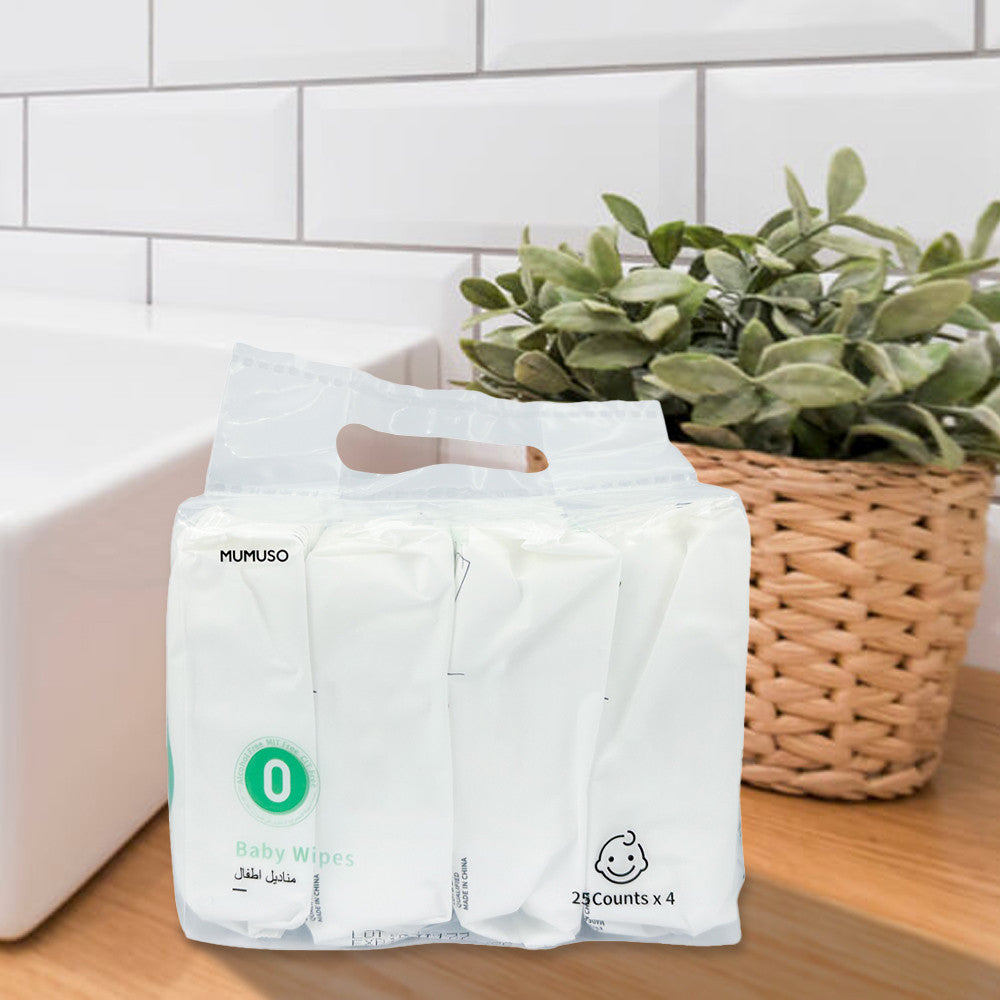 Mumuso Baby Wipes are perfect for caring for your baby's delicate skin. With 25 pieces per pack for a total of 4 packs, you have plenty to cover your little one from head to toe. Gentle and dermatologically certified, our wipes are made with 99% purified water and naturally derived ingredients.