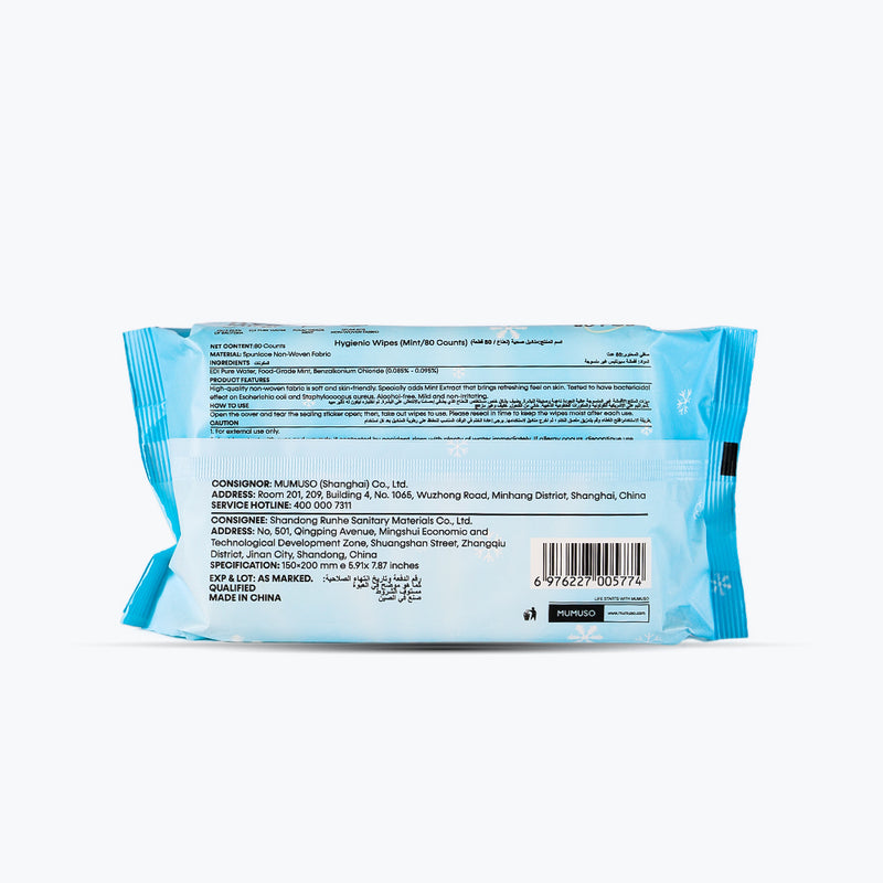 Indulge in luxury with Mumuso Hygienic Wipes. These premium wipes, infused with refreshing mint, offer you 80 counts of cleanliness and freshness. Elevate your hygiene routine with this sophisticated and exclusive product.