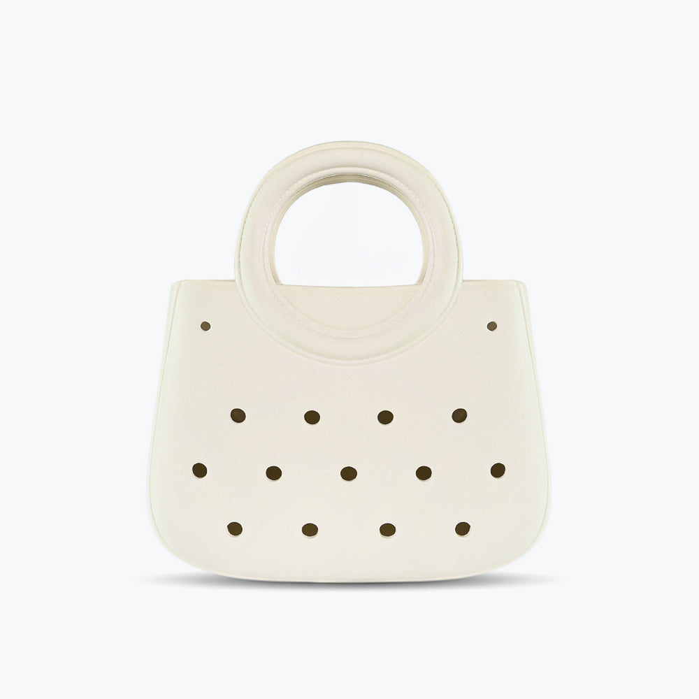 Indulge in luxury with the Mumuso Perforated Bag - B03 Beige. Featuring a sleek design and perforated details, this bag is the perfect blend of style and functionality. Carry your essentials in style and elevate your look with this sophisticated accessory.