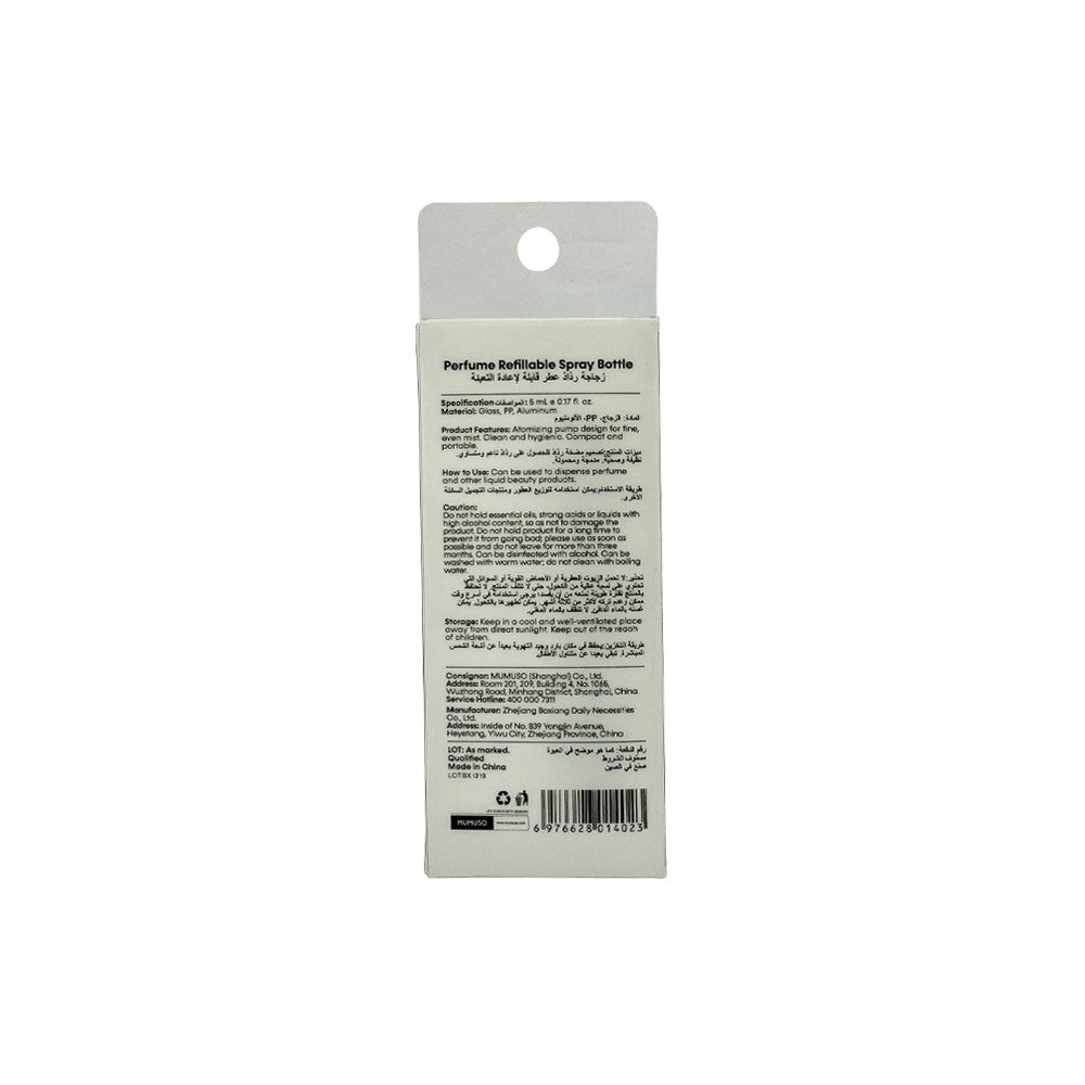 Elevate your fragrance experience with our Mumuso Perfume Refillable Spray Bottle. This elegantly designed atomizer offers a sophisticated solution for carrying your signature scent wherever you go. Its precision spray mechanism delivers the perfect amount with each press, while the durable construction ensures your precious perfume remains protected. An essential accessory for the discerning fragrance connoisseur.