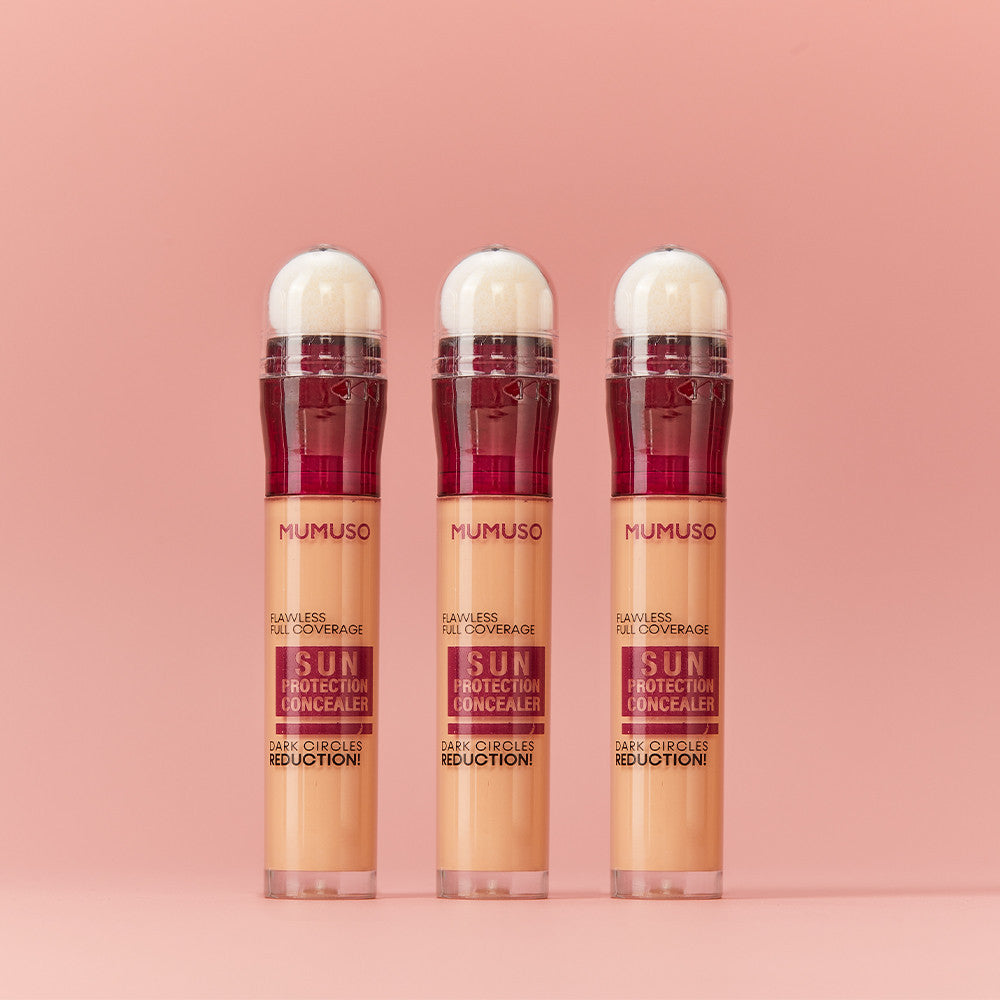 Mumusos Sun Protection Concealer, Wheat Color provides full coverage for blemishes and dark circles with its lightweight formula. The built-in SPF50 offers UVA/UVB protection for daily use. Its creamy, non-greasy texture is easy to blend with a natural finish. Protect and conceal with Mumuso.