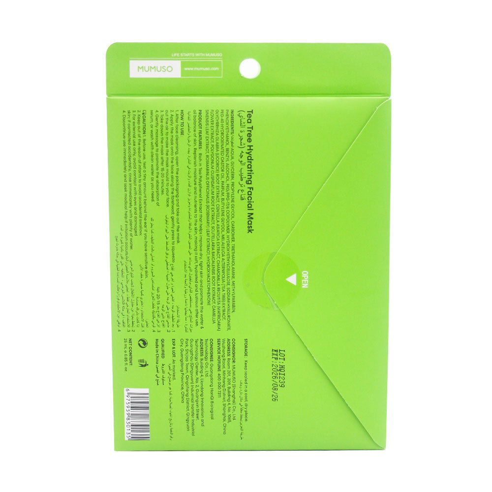 This Mumuso Tea Tree Hydrating Facial Mask is a must-have for all skin types. Infused with natural tea tree extract, it deeply hydrates and nourishes the skin, leaving it refreshed and rejuvenated.Â